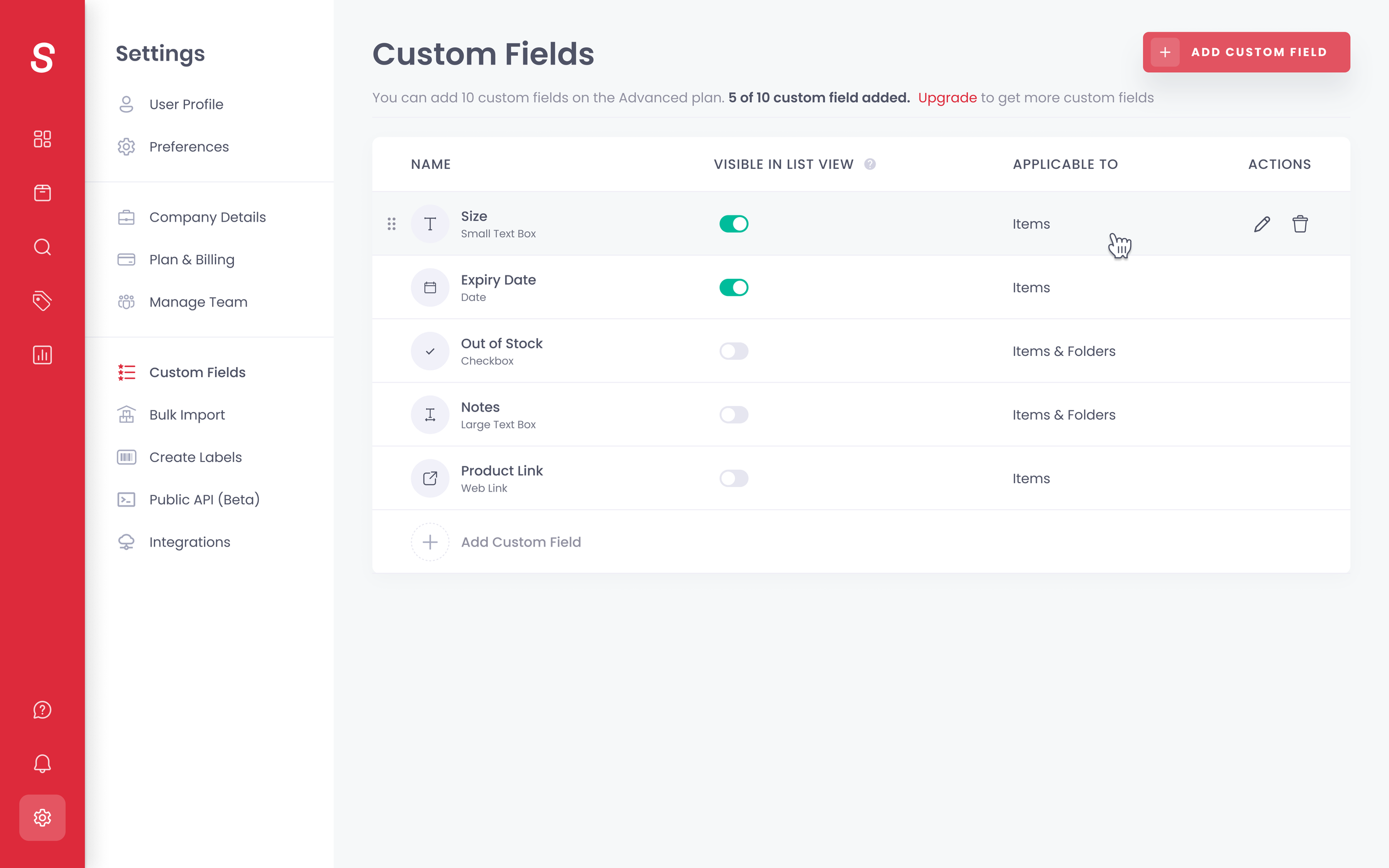The average number of custom fields is five or more, and to effectively manage fields, we needed a dedicated UI within the settings option.
