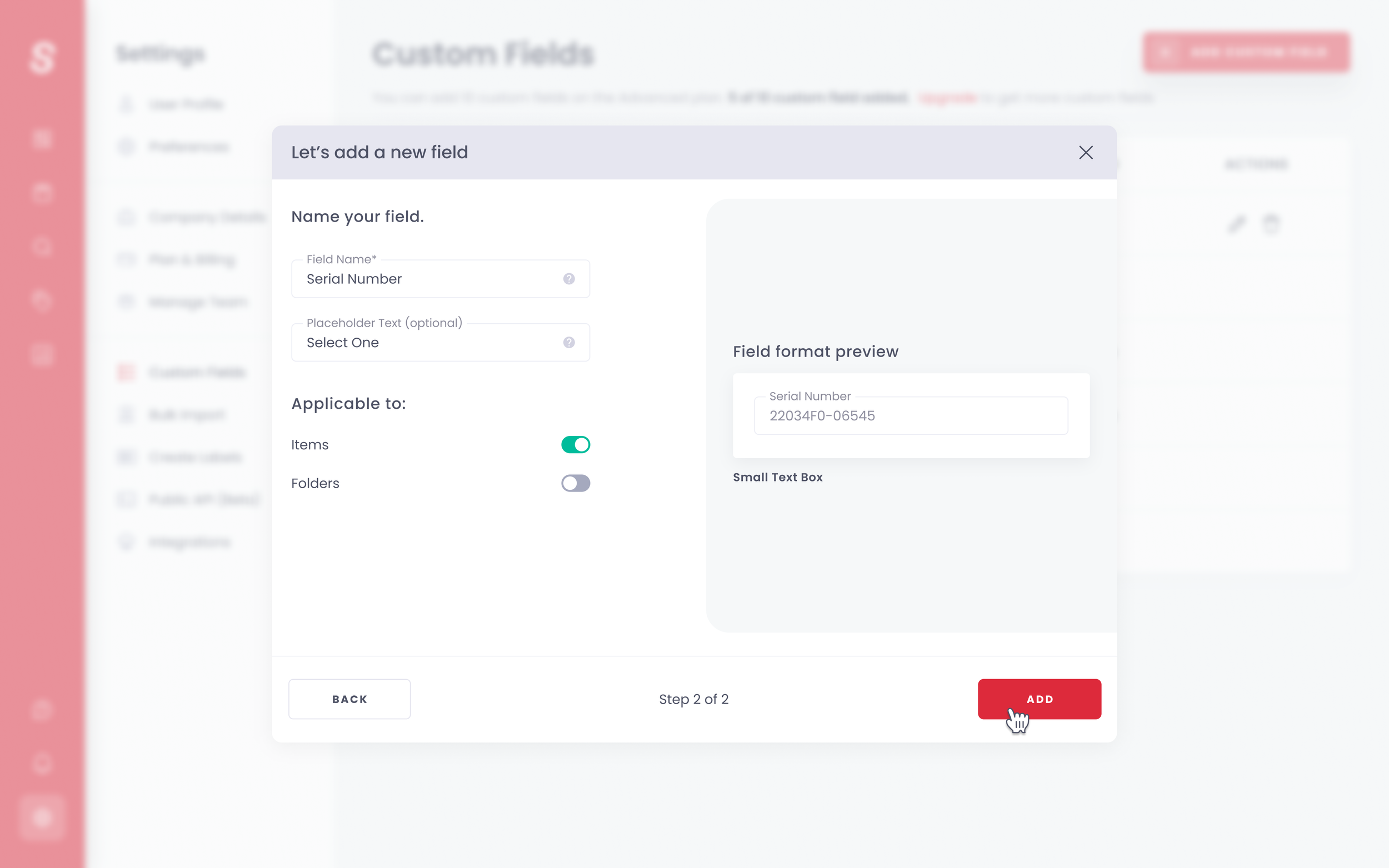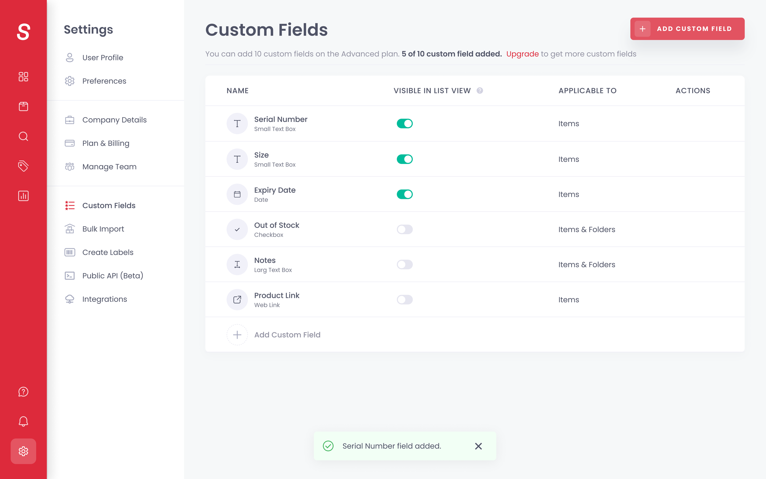 You can create custom fields to track any item or folder-related details in Sortly. This is generally unique information you want to track that doesn’t fit into any of the default fields provided by Sortly. Users need a solution to manage multiple custom fields efficiently.